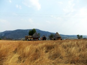 Ich fuhr weiter, verließ den Highway, bog in eine Seitenstraße ab. Die Straße schlängelte sich wie ein Fluss durch die Landschaft, sie schien kein Ende nehmen zu wollen. Ich war fast alleine in dieser Gegend unterwegs, überholte nur wenige Autos, die meisten davon waren voll beladen mit Säcken voller Maismehl oder anderen Nahrungsmitteln. Auch ein paar Commuter-Busse waren unterwegs, für viele Menschen die einzige Möglichkeit, um von ihrer kleinen Hütte ins nächst größere Dorfes zu kommen. Aus einer Entfernung von mehreren Kilometern kommen die Menschen hier zusammen, um an der Hauptstraße Tomaten oder andere Lebensmittel zu verkaufen. Vereinzelt gibt es auch eine Tankstelle oder einen kleinen Supermarkt, für viele Menschen ist dies die einzige Möglichkeit, sich mit den Bewohnern anderer Dörfer auszutauschen.